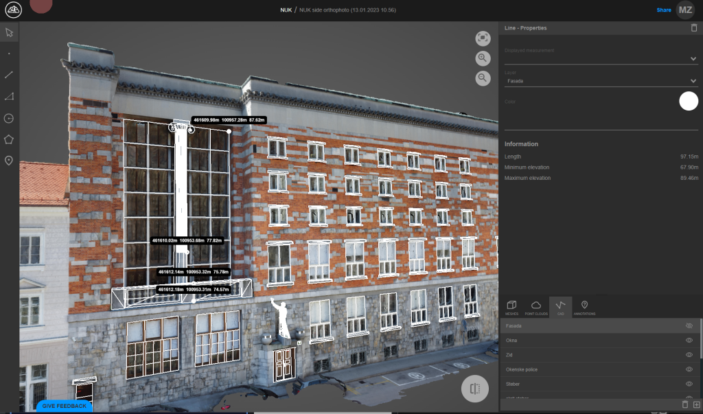 The 3Dsurvey cloud viewer is a convenient way to share highly detailed 3D data. With 3Dsurvey, users create detailed 3D models and point clouds, but it is important to ensure that customers and stakeholders can open the resulting files in their own settings. With that in mind, we developed our cloud viewer platform. With the cloud viewer, users can upload a project into the 3Dsurvey cloud, then create a shareable link to share with clients. The customer will not need a big and powerful computer or expensive software to view the project – it can be viewed from any computer. 3Dsurvey viewer also includes tools for visualizing the data, making 3D measurements and comparing different surveys on a timeline.