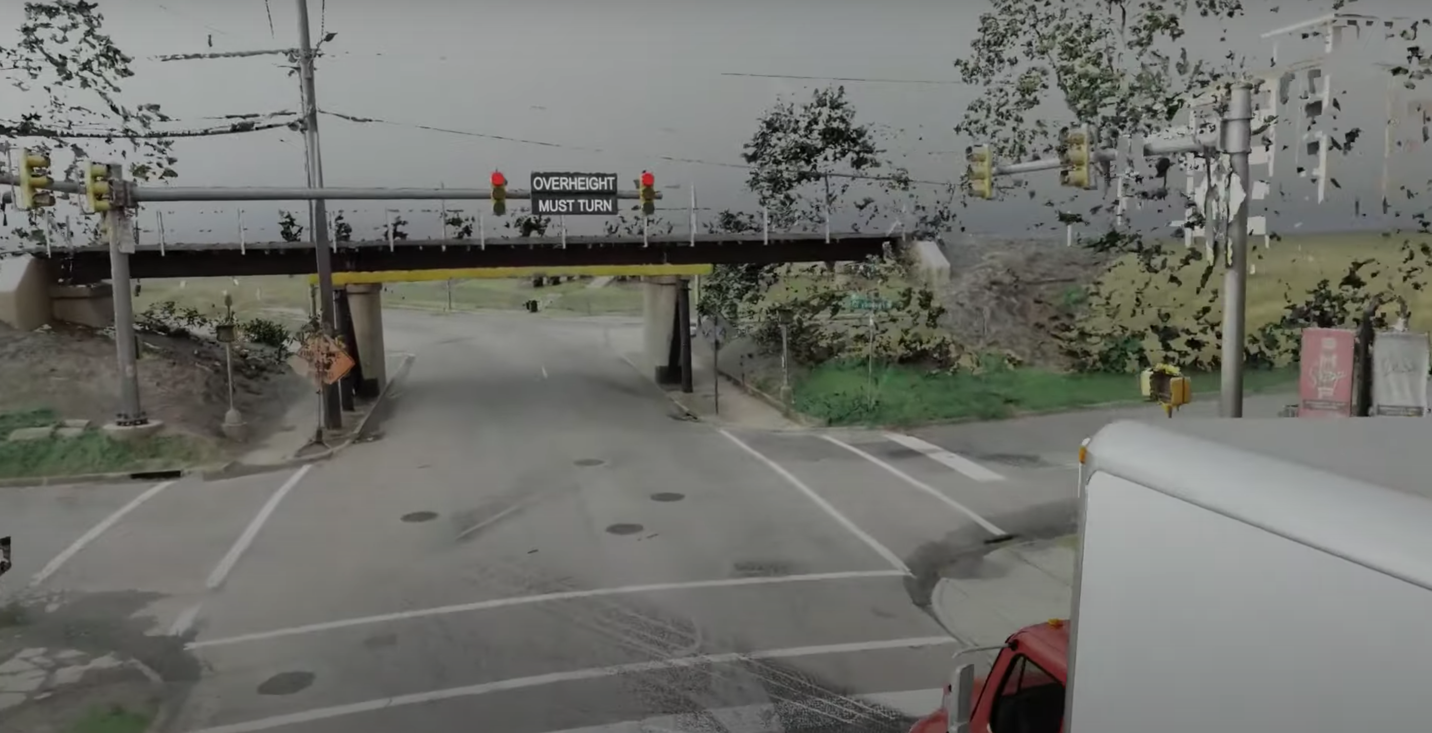 One surprising finding is that the sensors that activate the bridge are conservative and that the actual height of the underpass is, even at its lower point, actually higher than the stated clearance on the sign. Even with an extra few inches, and a clear warning, trucks still continue to hit the bridge.