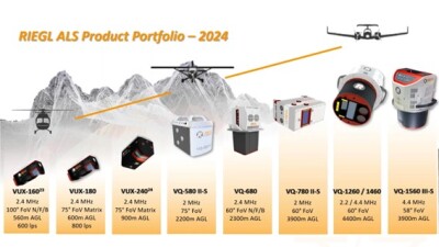 Finally, the company also announced the release of the new VQ-1560-III-S to their airborne mapping suite of scanners. The dual channel laser scanning system includes a cross-fire scanning pattern that enables a forward and backward view to the edges of the swath and a nadir view in the middle of the swath, which RIEGL says results “in best point distribution for optimum target sampling.” The scan pattern makes it an option for a variety of project types, from ultra-dense corridor mapping to large-scale wide area mapping projects.