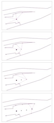An instrument progresses along an irregular corridor (above right, Metzler). Cameras recognize features as points in all directions. As the instrument moves, resection is performed using these points, providing a real time position. This technique of Visual SLAM is used in multiple Leica Geosystems reality capture sensors (and in some instances, combined with lidar SLAM, dubbed “GrandSLAM”). (Metzler)